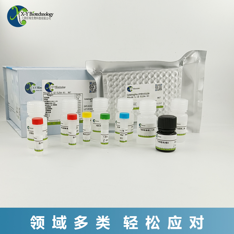 信裕生物生产的ELISA试剂盒采用抗体夹心法:将抗小鼠IL-1b抗体包被于酶标板上,标本和标准品中的小鼠IL-1b与抗体结合,加入生物素化的抗小鼠IL-1b抗体,再加入ABC复合物与生物素抗体结合,形成免疫复合物,然后加入TMB显色底物,显色剂显蓝色,最后加终止液变黄色,游离的成分被洗去。在450 nm处测OD值,小鼠IL-1b浓度与OD值之间呈正比,可通过绘制标准曲线计算出标本中IL-1b的浓度。