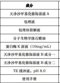 运输及保存 常温运输及保存,蛋白酶 K 溶液、包埋液和包埋块裂解液需低温运输,-20℃保存。有效期一年。